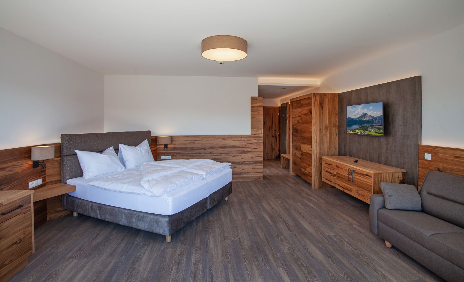 Unsere Juniorsuite im Hotel Gasthof Enichlmayr e.U. bietet Ihnen eine großzügige und stilvolle Unterkunft mit separatem Wohn- und Schlafbereich.